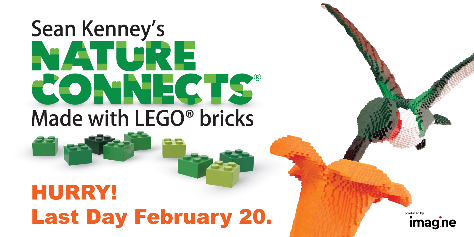 Explore Sean Kenney's Nature Connects Made with LEGO Bricks at Riverbanks Botanical Garden for a limited time. The exhibit is included with admission!